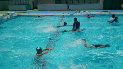 けのびができるようになってくると、ビート板を使い、バタ足の仕方やクロールの手のかきを学習していきます。
