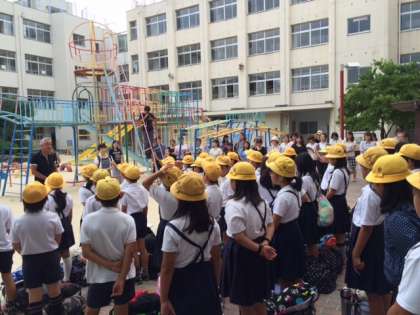 7月28日(火)15時55分 5年生の児童が林間学習から帰ってきました。