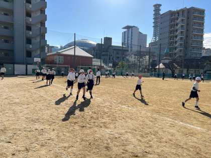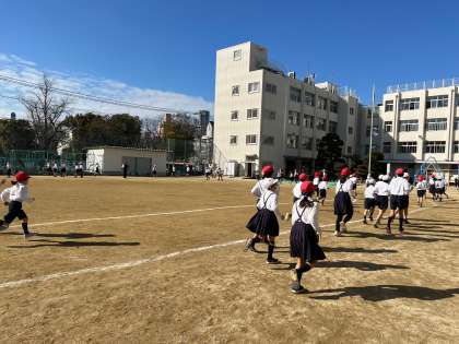火・木曜日は2・4・6年生、水・金曜日は1・3・5年生が走ります。約5分間、運動場のトラックを走ります。
