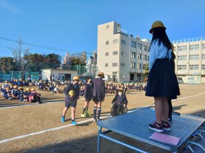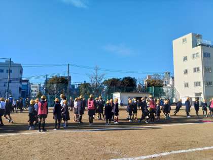 木曜日の児童集会は、Bチームによる「ドキドキゲーム」でした。班でボールを回し、笛が鳴ったときにボールを持っていた人が班の周りを走って一周するというゲームです。ボールを回しているときは、どの班も静かに回しているのですが、笛が鳴った瞬間にワッと歓声が上がります。久しぶりの運動場での集会で、みんなの笑顔が見られて、楽しいひとときとなりました。