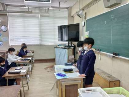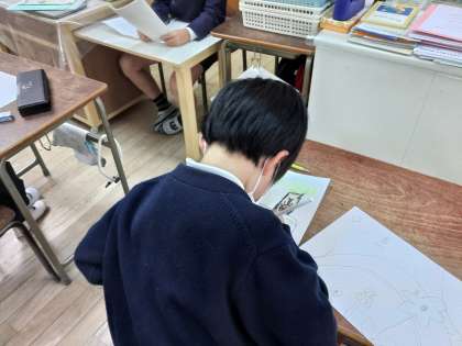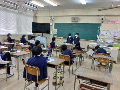 今日の「たてわり班活動」では、これまでお世話になった6年生へのメッセージカードを作りました。今回は、6年生はそれぞれの学級で学習し、たてわり班には来ないので、5年生が中心となって活動しました。