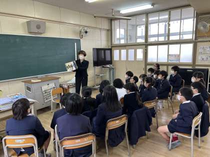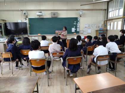 3年生はオオカミから犬へやヨセフの大事なコートなどを読んでもらい、子ども達は熱心に聞いていました。キップコップのみなさん、ありがとうございました。