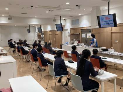 5年生は大阪ガスハグミュージアムに出かけ、学習しました。調理実習を行う前には「考える防災教室」として、防災減災に取り組むことの大切さについて考え、ガスや電気、水道が止まったときにどうするのか、具体的な場面を想定して、自分たちができる取り組みについて考えました。