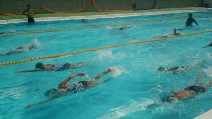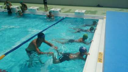 クロール、バタフライ、背泳、平泳ぎ、各コースに分かれて自分の記録を伸ばそうと熱心に泳ぎこんでいました。