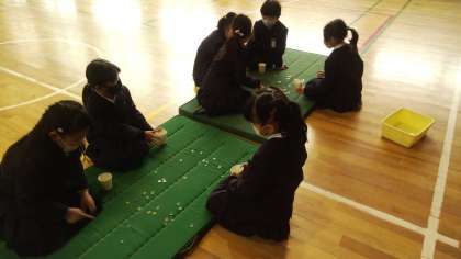 めんこのお師匠さんである校長先生とめんこの遊び方やルールを再確認すると、早くやってみたい子どもたちでいっぱいです。他のコーナーでもお店の人とお客さんを入れ替えながら、楽しんでリハーサルが進んでいました。