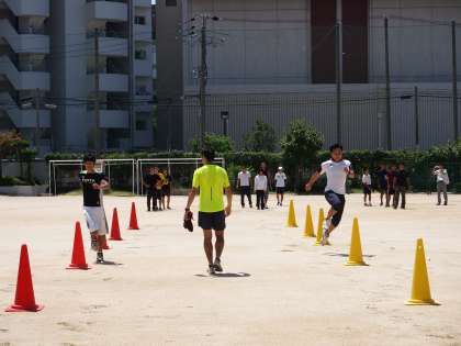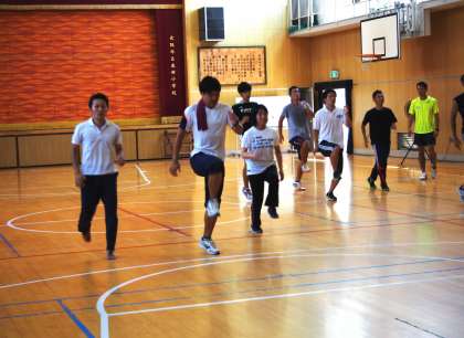 本日、本田小学校体育館において、西区内の小中学校の先生方を対象に体育科の実技研修会が行われました。本校からは、体育部の先生方が参加しました。今回の研修会は、西区役所 まち魅力創造課 教育・文化グループ主催。講師の荒川大輔選手は、世界陸上(2007年大阪、2009年ベルリン)出場。2012年の日本選手権大会 走り幅跳び優勝という実績の持ち主。運動の構造的特性や機能的特性を熟知した荒川選手の分かりやすいお話と示範演技に参加者全員が引き込まれ、あっという間の2時間30分の実技研修となりました。荒川選手の熱い語りと超人的な動きは全て理にかなっており、授業のヒントになるものばかりでした。先生方の引き出しが増えたのは間違いありません。各小中学校での2学期からの体育科授業の中で必ず生かされるものと確信しています。