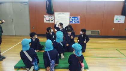 来年度1年生になる幼稚園の子どもたちが来校し、1年生がリーダーになって、8つの昔遊びの遊び方をアドバイスしました。幼稚園の子どもたちは順に回ってくれました。遊びのコツが難しいコーナーもありましたが、1年生が「こうしたらいいよ。」と優しく話しかけたり、手をつないだりして温かい雰囲気に包まれていました。