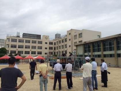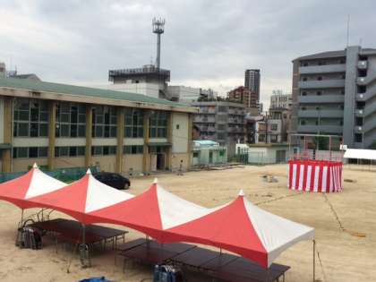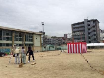 九条南連合盆踊り大会まであと6日となり、九条南小学校の運動場では、盆踊りの準備が着々と進められています。