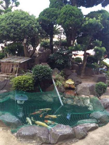 本校自慢の築山では、残暑の厳しさも何のその、木々が涼しげな日陰を演出し、池では鯉が元気に泳ぎ回り、児童の皆さんが登校して来る日を今か今かと心待ちにしています。