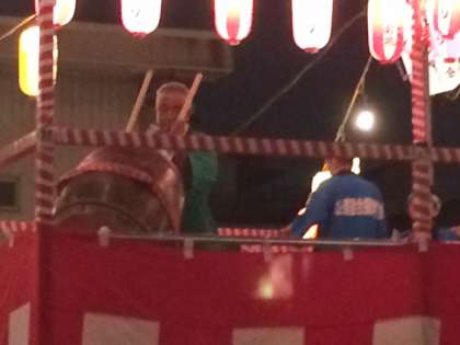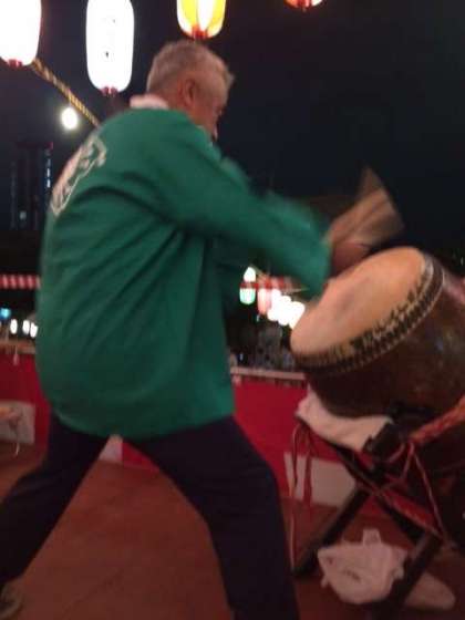 盆踊りの中盤にはスペシャルゲストが登場し、力強い太鼓を披露しました。