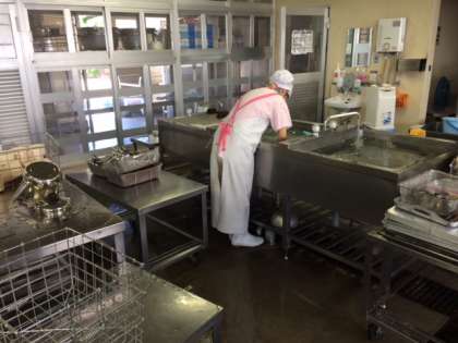 安全でおいしい給食を児童のみなさんに食べてもらうために調理員さんもがんばっています。