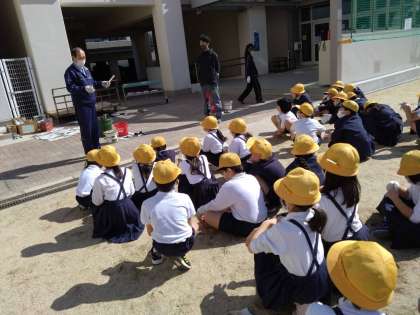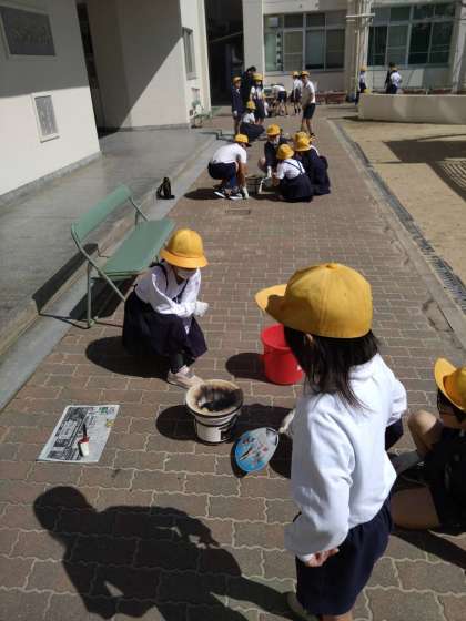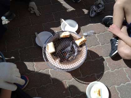 次はお餅を焼いていきます。焦げてしまわないように餅を七輪の端に置き,餅の様子を見ながら上手にひっくり返していました。焼けた餅はおいしくいただいて、みんなで片づけをしました。