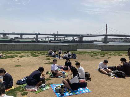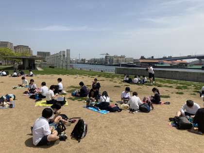 昼食は晴天のもと、海辺の公園でおいしいお弁当を食べました。空にはなんと、逆さ向きの虹も見つけられました。おいしいお弁当を食べた後はのんびりひなたぼっこをしたり、長縄で八の字跳びをしたりして楽しい時間を過ごました。