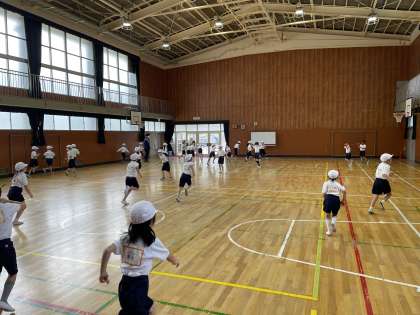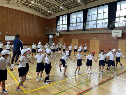 3年生になって2回目の体育の学習では体つくり運動をしました。みんなの大好きなおにごっこをして、その後はフラフープを使ってフープリレーをしました。チーム内での素敵な声掛けなども見られ、楽しく活動していました。