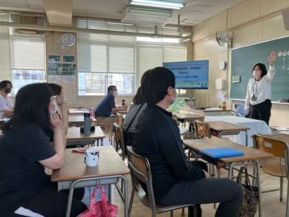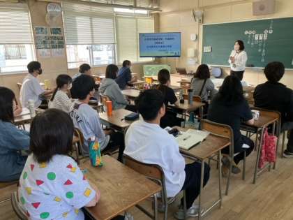 現職教員研修の第1回目の研修会を行いました。本年度は、外国語科、外国語活動の研究に取り組み、教育センターの指導主事を招聘し英語教育研究の根幹を分かりやすく解説いただき、今後の研究活動について理解を深めました。