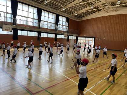 3年生に運動会に向けて練習を始めています。沖縄の伝統的な踊りのエイサーに取り組んでいます。「次は先生のお手本なしでやってみたい!」など、やる気いっぱいで取り組んでいます。