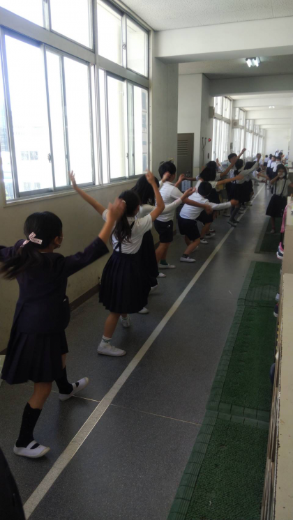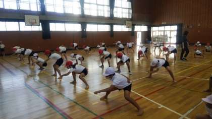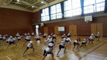運動会に向けて練習が始まりました。振付がむずかしいソーラン節にチャレンジし、「どっこいしょ!どっこいしょ!」と、元気に声を出しながら、練習に励んでいます。子どもたちの中には、昼休みにも廊下で練習し、おうちでも練習しているという子もいるようで、とても気合が入っています。これから、もっと上手になり、かっこよく踊れるようになるのが楽しみです。