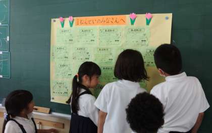 リハーサルの後には、2年生から「あったカード」が届きました。1年生のよかったところやがんばったところがたくさん書かれていて、1枚、1枚、うれしそうにメッセージを読んでいました。温かいメッセージをパワーに、本番もがんばってほしいです。