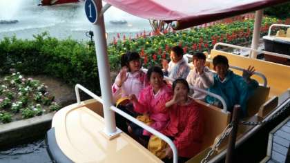 船のわずかな揺れや噴水の水しぶきにみんなでワー!!キャー!!
