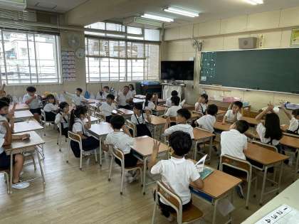 集会委員会の児童も初めての放送に緊張してマイクに向かっていました。