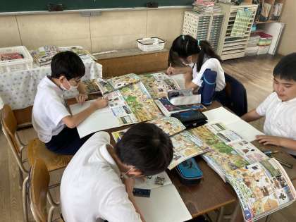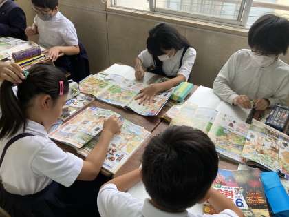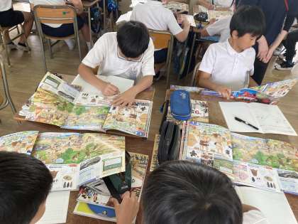 6年生の社会科では、歴史的分野の学習が始まり、資料集を活用しながら、縄文時代や弥生時代、古墳時代などのくらしや社会のようすについて学習を進めています。