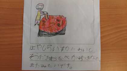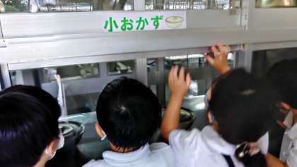 生活科で、給食室の見学に行きました。今日のメニューは、ハヤシライス・ミックス海藻のサラダ・さくらんぼです。大きなお鍋を、ボートのオールみたいに長いしゃもじで混ぜている様子に子どもたちは、びっくり!「すごい」「めっちゃ大きい」と大興奮でした。おいしい給食をいっぱい食べて、大きく成長していってほしいです。