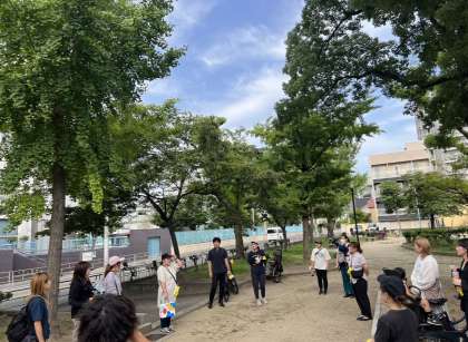 九条南公園に保護者や教職員が集合し、グループに分かれて、夕刻の校区内の巡視を行いました。今回は3・6年生の保護者の方を中心に実施されました。