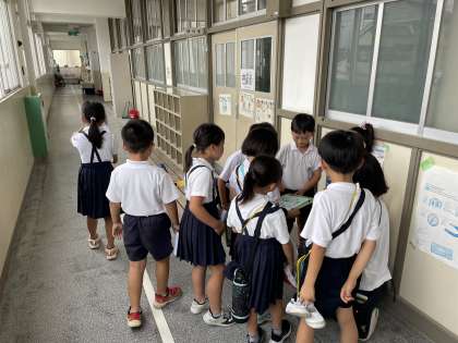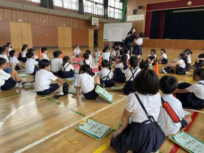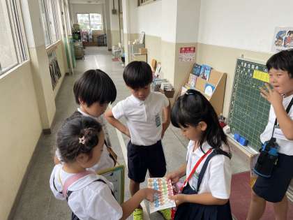 1年生は学校の特別教室を回ることができて楽しかった。2年生が英語を使っていてかっこよかったと感想を伝えていました。