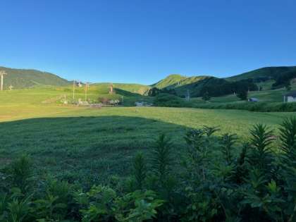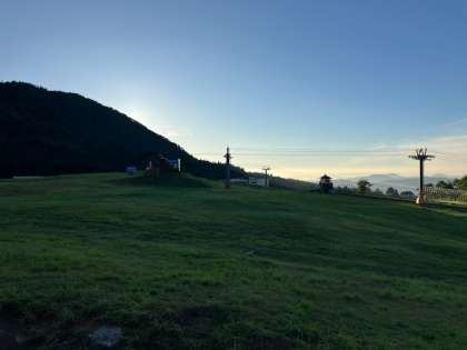 鉢伏山の稜線から、朝日が昇り高原を照らしています。高原の空気が最高に爽やかです。おはようございます。