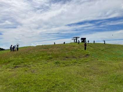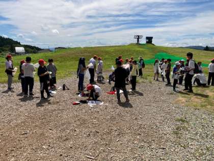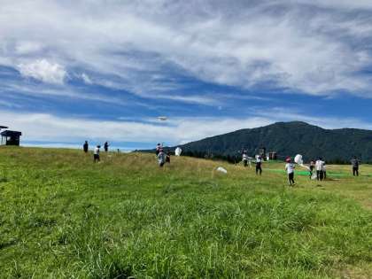 凧上げするには、風速が弱かったのですが5年児童は、広い草原を力一杯走って楽しみました。