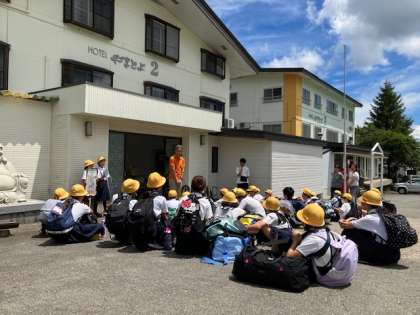 3日間お世話になった宿舎「やまとよ」さんに児童代表が、「3日間が、あっと言う間に終わり、とても短く感じ楽しく過ごせたのも宿舎の皆さんのおかげです。ありがとうございました。」と感謝の気持ちを込めてあいさつしました。