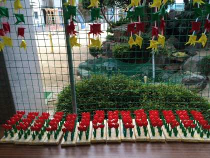 「子どもたちの心のこもった手紙に元気をもらったお礼に・・・」と、地域の方からこんな素敵な「折り紙作品」が学校に届けられました。