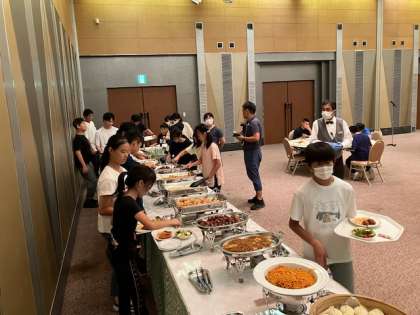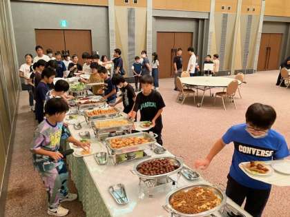 6年生が、美味しそうな料理を一つ一つ吟味して選んでいます。
