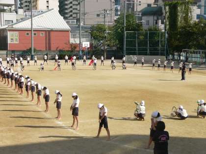 56年生は、運動会のラストを飾る組体操の練習に仲間と励まし合いながら今日までがんばってきました。例年には無かった演技も取り入れています。