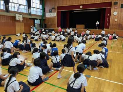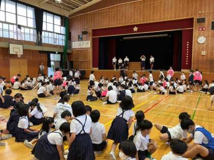 児童集会は、たてわり班でイントロクイズを楽しみました。