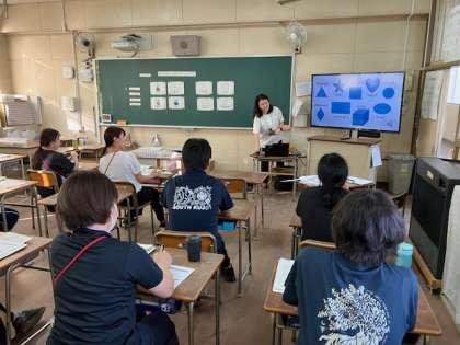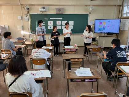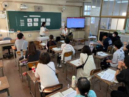 4年生の外国語活動の授業を校内研修として参観し、教育委員会から講師を招聘して外国語活動の指導法について学習しました。児童が楽しく主体的に英語に親しむ指導、支援や教材の工夫・活用の仕方などの理解を深めました。