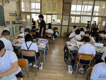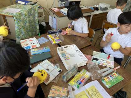 6年生の学習参観は、図画工作科の学習を行いました。地域の方からいただいただるまを自分の思い描いたイメージに沿って、デコレーションしていきます。だるまに思い思いの願いを込め、世界に一つだけのオリジナルのデコだるまが完成しました。