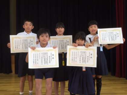 昨日の表彰式に続いて、全校朝会でも表彰を行いました。