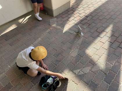 3年生は理科で「光のせいしつ」を学習しています。鏡に日光を反射させることで、日光はまっすぐ進むことに気づくことができました。また、光を鏡に反射させていろいろな光の道筋もつくりました。