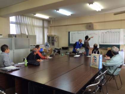 地域の方と合同で、防災の学習をすることで、消火の仕方や救護の仕方を体験し、防災への意識を高めるために、今日は地域合同防災訓練が行われています。