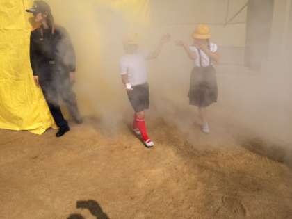 1・2年生は、煙体験と消防車の乗車体験をしました。