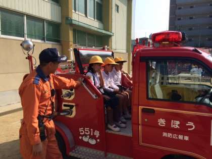 消防車には実際に乗らせてもらえることができました。