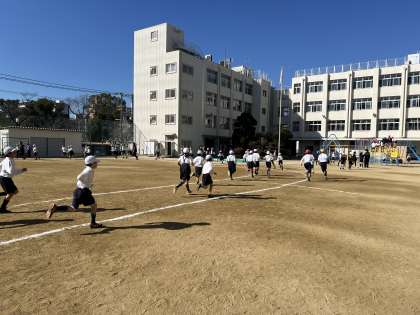 今日から耐寒かけ足が始まりました。水・金曜日は1・3・5年生、火・木曜日は2・4・6年生が走ります。約5分間、運動場のトラックを走ります。