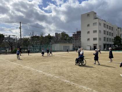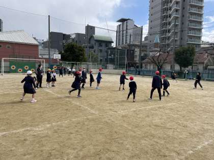 今週、運営委員会企画の「ドッジビー祭り」というたてわり班遊びをしています。各班を2つに分けてドッジビーで対戦しています。どの班もみんなが楽しめるようにとフリスビーを譲り合いながら楽しんでいます。残り少ない6年生との時間を楽しんでいます。