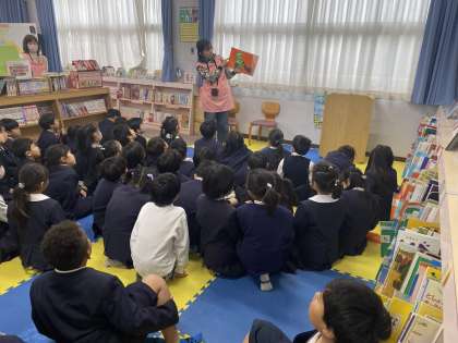 図書室には、たくさんの子どもたちがお話を聞きに来ていました。