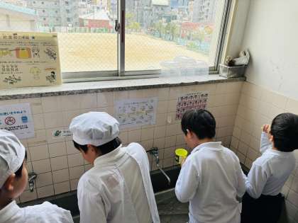 今年度より給食後に、はみがきを行っています。手洗い場に掲示されてある「はみがきたいそう」の手順を見ながら、しっかりと磨くことができていました。朝晩のはみがきも忘れないよう声掛けや、ご協力よろしくお願い致します。