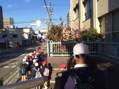 秋晴れのスポーツ日和の中、6年生の児童は、晴れ晴れとした表情で元気いっぱい出発して行きました。