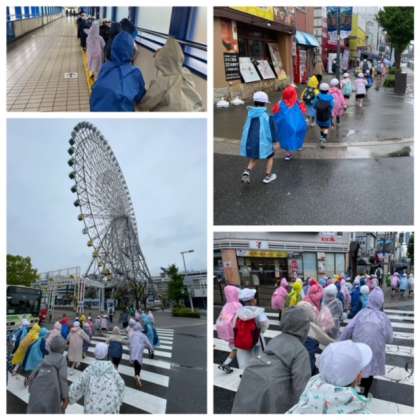 大阪港駅に到着、海遊館を目指します。駅の通路にも色々な海の生き物の写真の展示があり、子どもたちの期待が膨らみます。