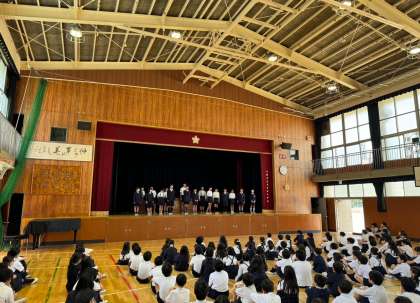 令和6年度、前期の児童会開きを行いました。前期の運営委員、各委員会の委員長の自己紹介を行いました。一人ひとりが九条南小学校のために頑張るぞという気持ちを力強く発表する姿があり、頼もしさが感じられました。