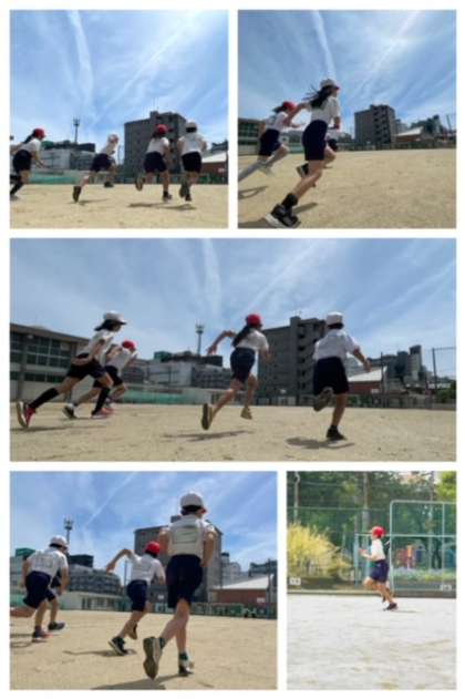 3年生はトラックを走る練習をしました。トラックで走る時は、スタートラインが斜めになっていて、そこから第一コーナーに向かって真っ直ぐに走らなければなりません。